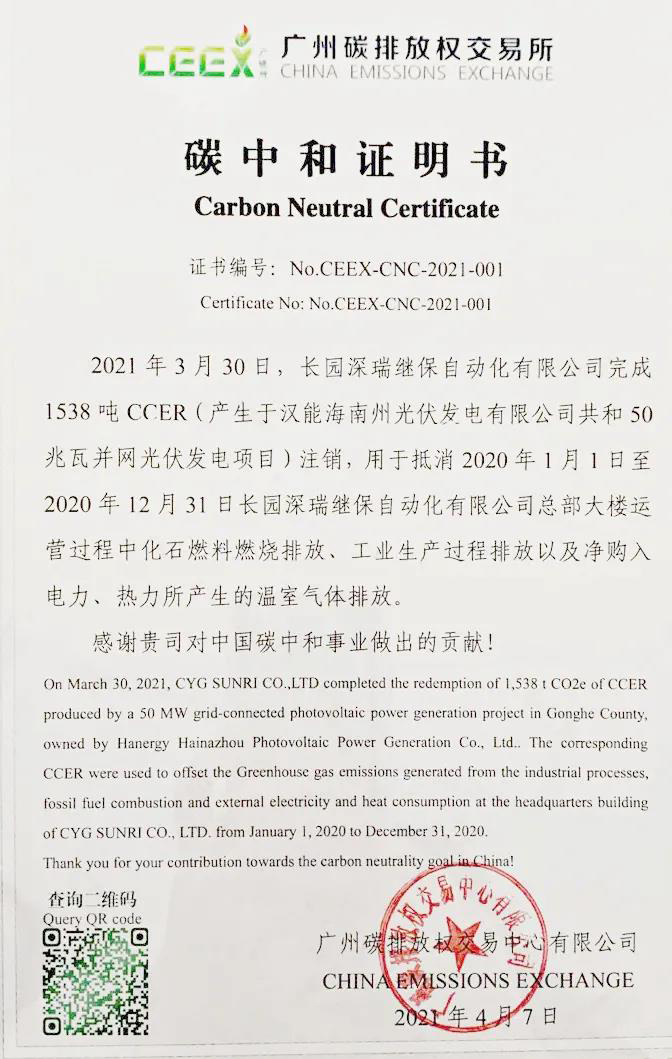 在首次“零碳鉴定”后,三亿体育深瑞开始着手启动本部大楼碳中和项目,并积极中和本部大楼2020年运营过程中化石燃料燃烧排放、工业生产过程排放以及净购入电力、热力所产生的1538吨温室气体排放,实现公司运营层面零碳目标。